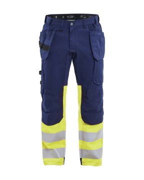 Kevyet, joustavat ja kestavat riipputaskuhousut tarkkaan mietityilla yksityiskohdilla. Stretch-kangasta on haaroissa, takapuolella polvissa liikkuvuuden parantamiseksi. CORDURA®-stretch polvisuojataskut lisaavat mukavuutta polvilla tyoskenneltaessa. Sertifioitu EN ISO 20471 luokka 1.