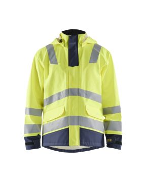 Tämä sadetakki tarjoaa suojaa joka säässä. Huomiovärisellä materiaalilla on korkea suojaustaso ja se on erittäin kestävä. Takki on sekä tuulen- että vedenkestävä, teipatuilla saumoilla. Irrotettava ja säädettävä huppu ja pehmeä, fleecellä vuorattu, kaulus. Takissa on myös helppokäyttöiset, läpälliset etutaskut painonapeilla, Napoleontasku etulistan sisäpuolella ja irrotettava ID-korttitasku. Tukeva, kaulukseen asti ylettyvä, kaksisuuntainen vetoketju listan alla. Edessä napit, myrskysuoja napeilla. Tarralla säädettvät hihansuut. Sertifioitu EN 1149-5. EN ISO 20471, luokka 3. EN 343. EN ISO 14116, index 3. IEC 61482-2, luokka 1.