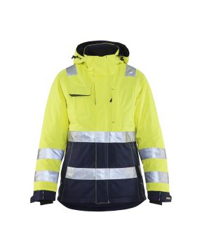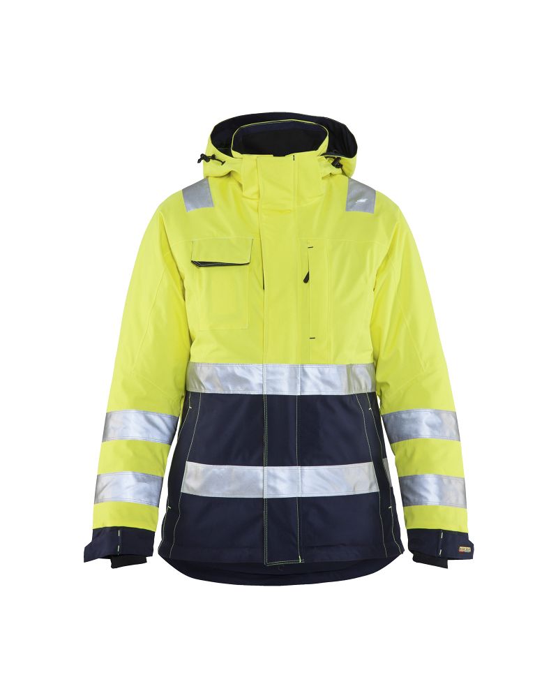 Lämmin huomio talvitakki naisille. Tikkivuorellinen takki kestävällä, tuulen- ja vedenpitävällä materiaalilla. Teipatut saumat. Tumma kangas on sijoiteltu helposti likaantuville alueille. Takissa on kaksisuuntainen vetoketju, muotoillut hihat ja pidennetty selkäosa liikkuvuuden lisäämiseksi. 50 mm leveät heijastimet lisäävät näkyvyyttä. Sertifioitu EN ISO 20471 luokka 2, EN 343.